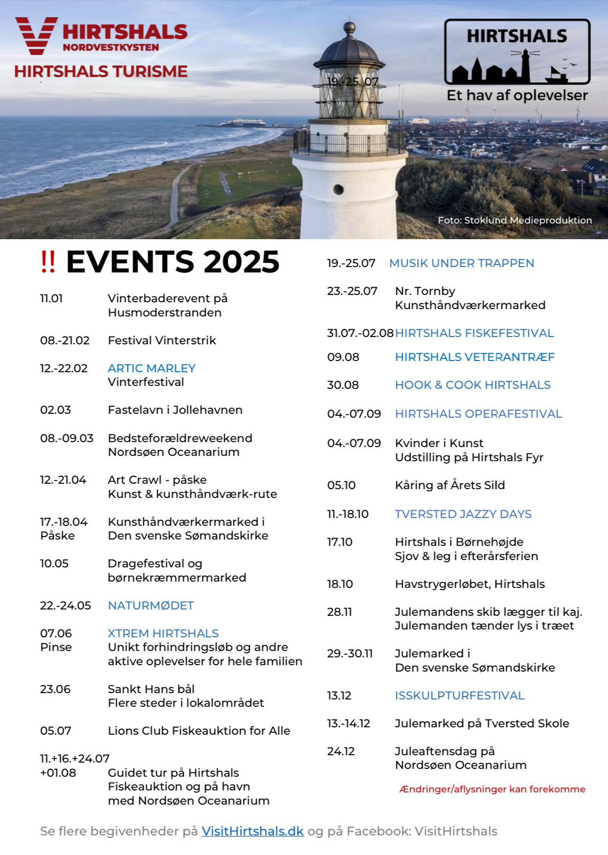 Hirtshals Turisme har igen samlet et udvalg af de mange skønne begivenheder, som året rundt i hele 2025 finder sted i og omkring havnebyen i det nordvestlige Vendsyssel.