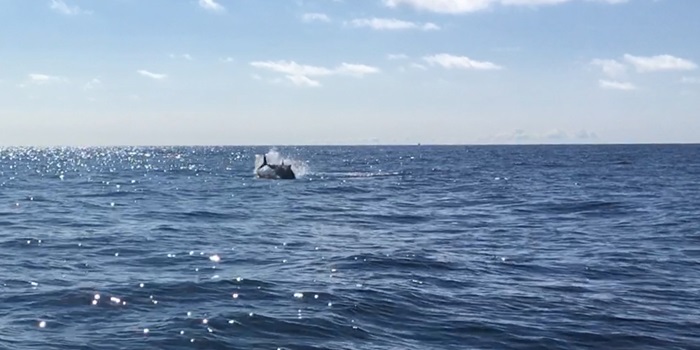 - Om du har set mulige byttedyr, som f.eks. sild, makrel eller hornfisk, springe op af vandet i flugtforsøg.