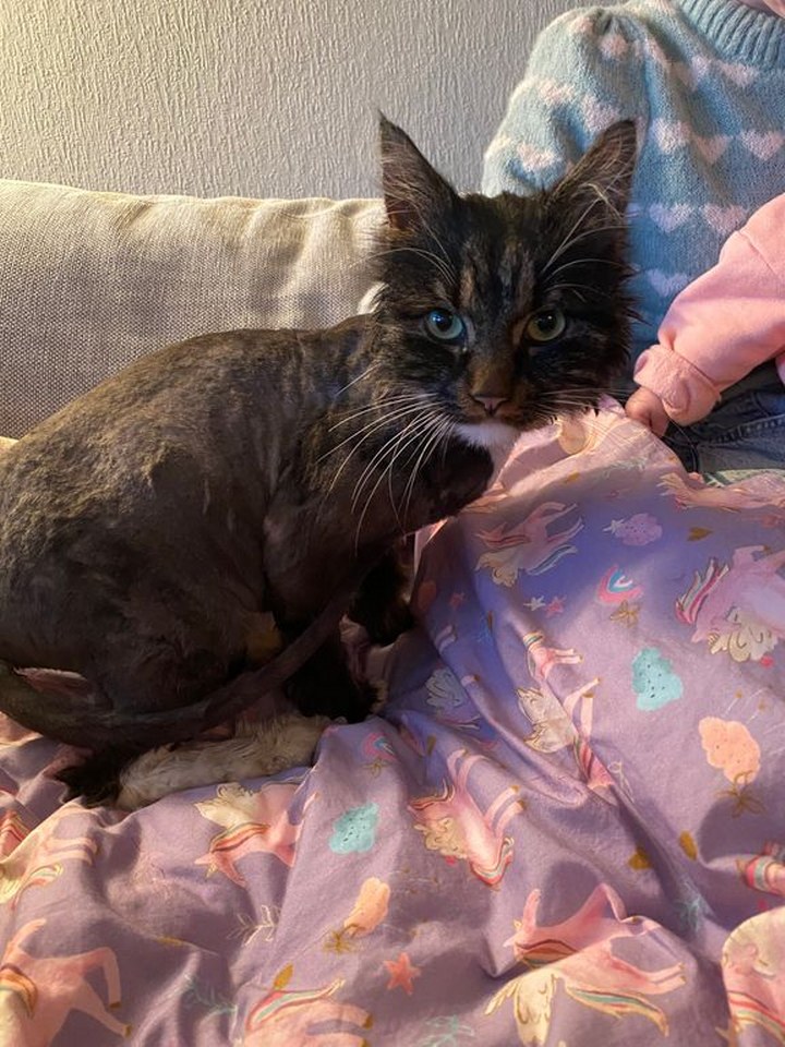 “Det var fantastisk at få Queenie i mine arme igen. Hun var fuld af skidt og havde sammenfiltret pels, men jeg fik min kat tilbage. Nu er hun nyklippet og mæt”, fortæller en berørt og glad Cindie Hartung.
