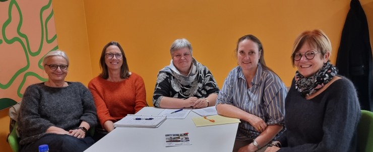 Hjørring Folkeuniversitets komité er fra venstre Anne Fonnesbech, Inge Reenberg, Helle Bæk Nielsen, Charlotte K. Velling og Anni Stilling. Privatfoto