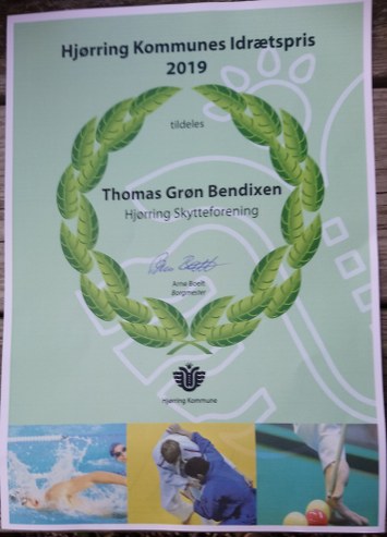 Kassereren for Hjørring Skytteforening, Birgit udtalte på generalforsamlingen: Søndag den 24. marts 2019 vandt Thomas G. Bendixen Danmarksmesterskabet for juniorer i indendørs skydning på riffel. Samme år deltog Thomas sammen med juniorlandsholdet i Bisley Cup i England. Her skulle han være med til at forsvare de danske farver i en stor årlig ungdomsturnering, hvor unge fra mange lande deltager.