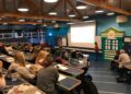 Dorte Lauenborg og Kristian Holme fra EUC Nord bidrog her til morgen med at klæde alle på til at forstå, hvordan man arbejder med forskellige faser i en innovationsproces; det kreative rum, det idégenererende rum og det entreprenante rum.