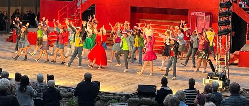 Det lykkes overraskende flot for de mange unge og noget færre ældre skuespillere og sangere at forløse rammefortællingen og få sendt de mange populære sange ud over scenekanten.