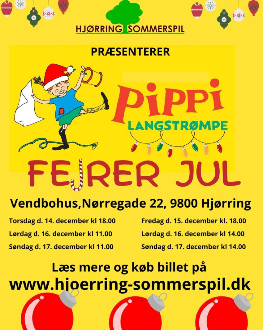 Selv om prøverne på årets forestilling “Mød mig på Cassiopeia” er i fuld gang, kan arrangørerne allerede nu afsløre, at Hjørring Sommerspil igen præsenterer et vinterspil på Vendelbohus. De opfører nemlig juleforestillingen Pippi fejrer Jul.