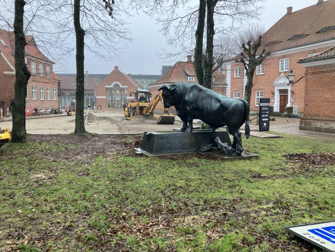 I dag kan tyren måske synes lidt malplaceret, for hvad gør sådan et stort dyr midt inde i byen, men ser man skulpturen i sammenhæng med de smukke, klassicistiske bygninger på Amtmandstoften, giver helheden et indtryk af en tid, der var engang – og som er under konstant forvandling.