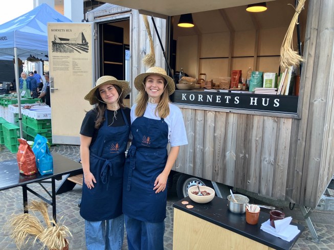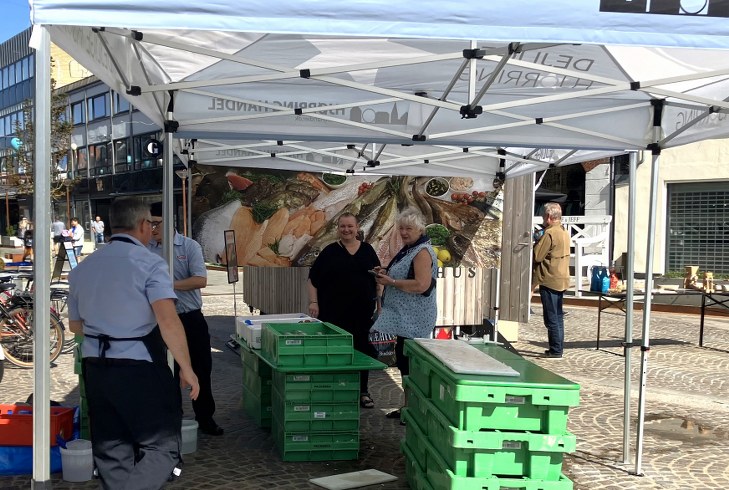 Lørdag var der knap så mange mennesker i midtbyen, og det var en smule tyndt med det annoncerede torvemarked med lokale råvarer. Kornets Hus var der, og det samme var Meny med lækkerier fra Venmark Fisk i Hirtshals.