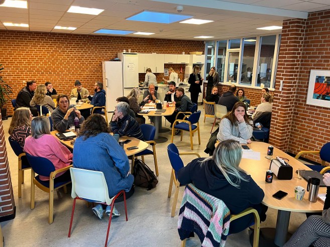 Det gav anledning til gode snakke, hvorunder det også viste sig, at den store indflytning måske er gået så godt og gnidningsfrit, som tilfældet er, fordi der faktisk findes et fælles sprog om kerneopgaven og grundlæggende de samme værdier.