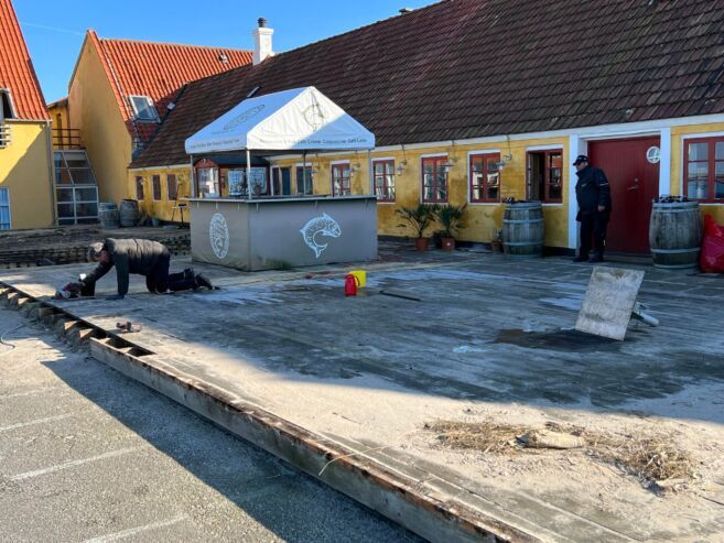 På trods af smalhals under coronakrisen, hvor norske turister i lange perioder praktisk taget har været fraværende i bybilledet, har Per Windahl Jensen hos Hirtshals Kro og Restaurant valgt at investere i en ny flisebelagt terrasse, der skal leveres af HMU A/S.