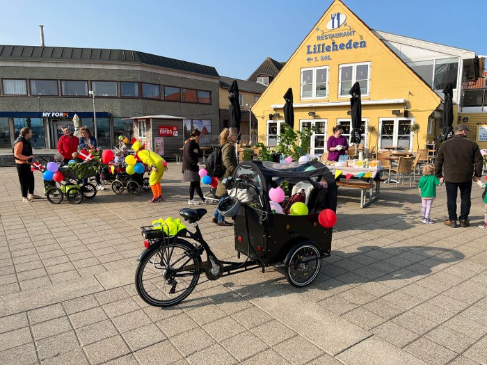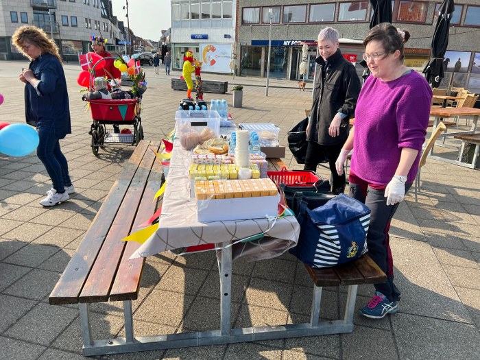 Der blev indledt med rundstykker, juice og kaffe på den forblæste plads, hvor flere begejstrede børn hurtigt fandt de forsænkede metalkasser med vand. I skrivende stund spadserer deltagerne igennem byen for så igen at slutte på Den Grønne Plads.