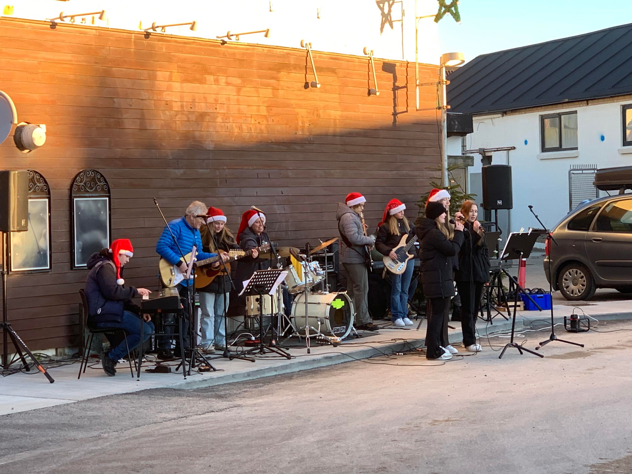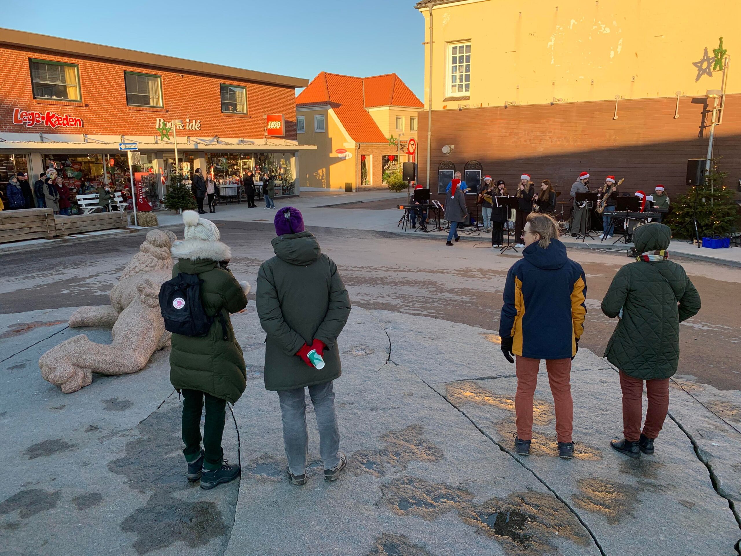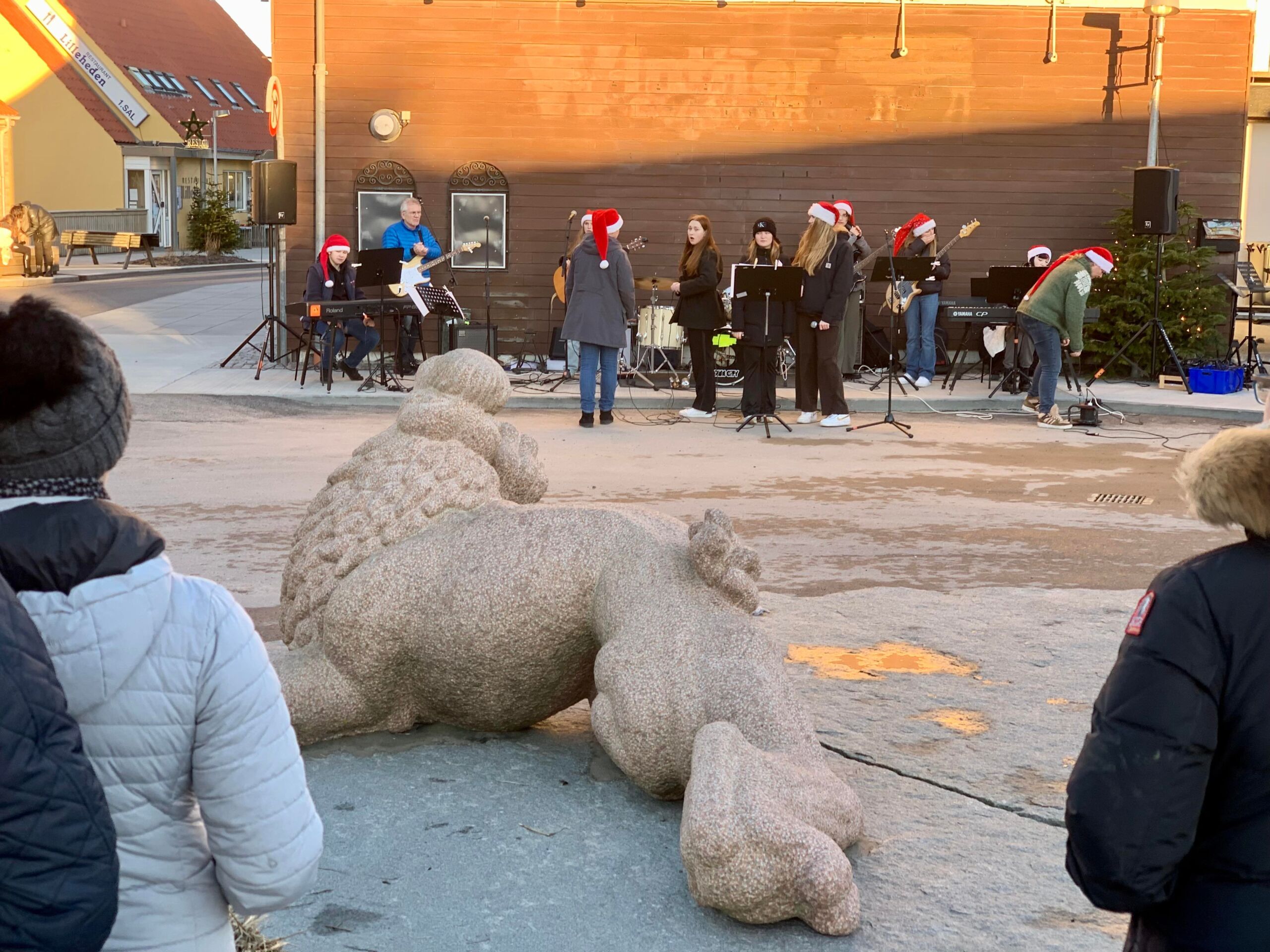 Lidt senere på eftermiddagen lod Horne Skoleband anført af Signe og Anja samt Chris Borup de skønneste juletoner klinge ud over Lille Tektonisk Plads i Hirtshals. Med kuskeslag i takt til musikken og på trods af behørig afstand hinanden imellem holdt de fremmødte borgere varmen.