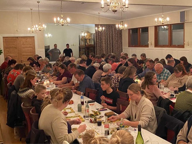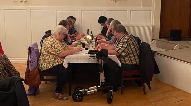 Aftenens menu bestod ikke af and, men af frikadeller og kartofler med brun sovs samt tilbehør. Det blev i alt til 15 andespil, med kaffe på rækken samt en flaske rødvin og en and på fuld plade.