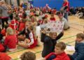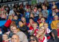 Med samtlige af skolen elever og lærere og en hel del forældre, så endte øst-tribunen med mere end 1000 tilskuere fra HPR, klar til at heppe på det fremtidige landshold.