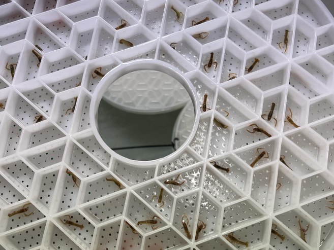 Ikke desto mindre er det lykkedes for de ansatte ved Nordsøen Oceanarium med god hjælp fra DTU Aqua at få æg fra drægtige hunner klækket, hvorefter larverne i små skarpt adskilte rum i runde plasticbakker har vokset sig store nok til at blive sat ud i havet.