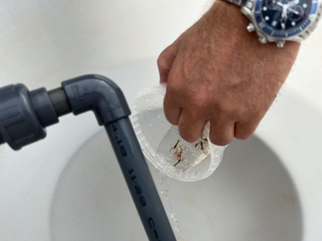 Efterfølgende har man så valgt at udsætte hummerne via en dertil konstrueret stor tragt og en lang slange, der med blylod ender på bunden og slæbes langsomt efter båden. Dermed har man så nogenlunde kontrol over processen og får nænsomt ynglen spredt på bunden langs revet, som er den helt perfekte biotop for de sorte hummere, som er omkring 7 år om at blive velvoksne og klar til at havne på spisebordene.