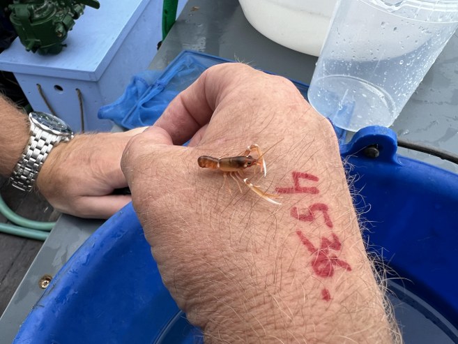 Denne søndag var turen så kommet til endnu et kuld af de små hummere. Helt præcist var der i dag tale om ikke færre end 4.536 af slagsen, der skulle udsættes ved stenrevene Vester Grund og Lang Hølg ud for Løkken. Derfor havde akvariechefen Martin sammen med assistenterne Kim og Alex søndag morgen gjort klar til at stævne ud med HG 159 Johs. Hejlesen, hvor skipper var Reinhardt Jensen.