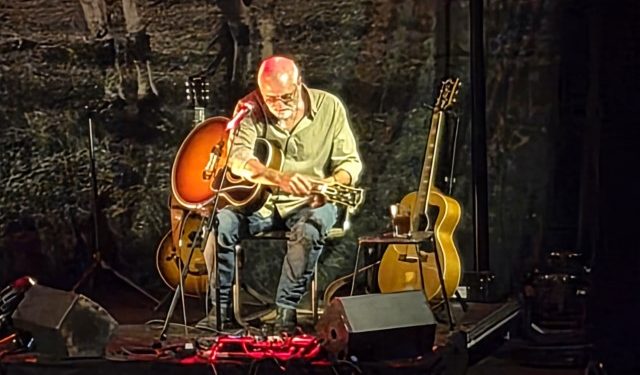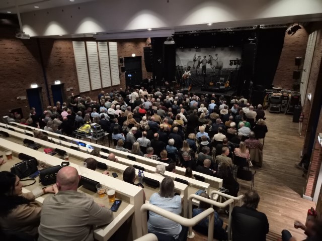 Således var scenen sat og stemningen på plads. Allan skiftede mellem akustiske og elektriske guitarer, mens han serverede anekdoter om sangene, livet og kække bemærkninger til scenefolkene – alt sammen med et glimt i øjet.