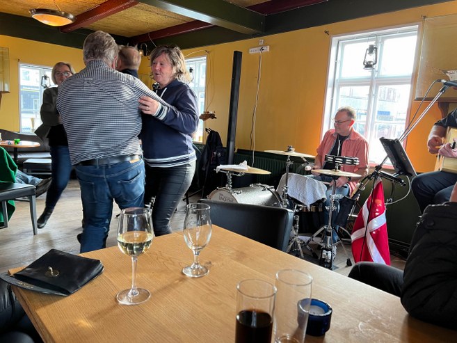 Længe havde de tre veloplagte troubadurer da heller ikke spillet, før de første gæster gav den gas på dansegulvet. Det var særdeles prisværdigt, at så mange lokale bakkede op om initiativet med levende musik på den gamle kro.