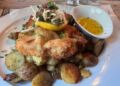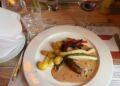 Aftenen blev dernæst rundet helt perfekt af med en smørmør peberbøf og en lækker wienerschnitzel imellem skønne lokalhistoriske skilderier af Lars Nielsen.