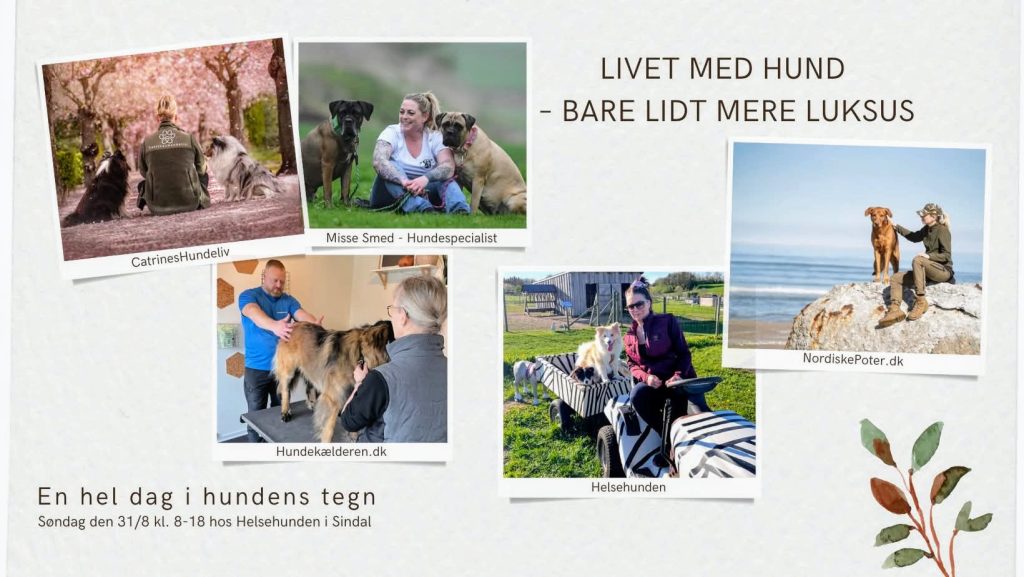 Søndag den 31. august fra klokken 08.00 til 18.00 forvandles Gutenbergvej 2A i Sindal til et sandt paradis for hunde og deres ejere. Helsehunden slår dørene op til en hel dag i hundens tegn, hvor der er fokus på hygge, faglighed og inspiration.