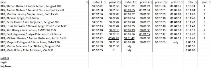 Resultatet af Hjørring Automobilsports Klub klubrally i Vrå: