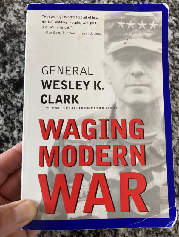 På billedet ser du en bog skrevet i 2001 af Wesley Clark, der var den ledende NATO-general under Kosovokrigen i 1999. I bogen beskriver han, hvordan NATO omsider fik lov at standse massakrer på civile. NATO skabte fred.