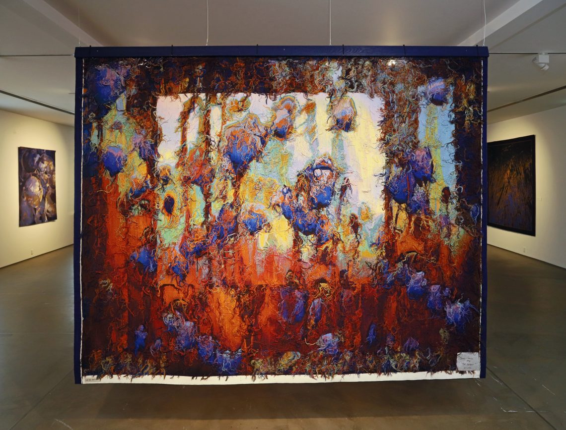 Gobelinerne er udstillet i museets store rum, så hver enkelt kommer til sin ret, én har tilmed fået særlig placering midt i rummet, så også værkets bagside er udstillet, og det er IKKE en fejl, at trådene ikke er hæftet.