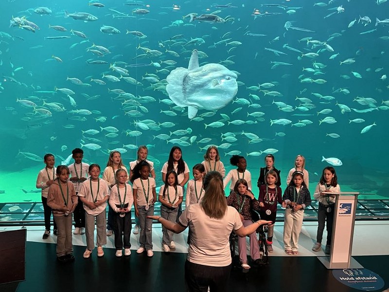 Efter en lækker brunch i Nordsøens Café underholdt Trivselskoret fra Hirtshals Skole de mange indbudte gæster med nogle smukke sange foran det store akvarium under ledelse af korleder Christina Thoft og musiklærer Maja Bak.