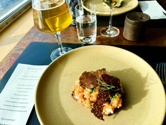 Efter søndag aftens lækre 3 retters menu ombord på Smyril Lines færge Norröna blev vi allerede mandag til frokost fristet til at genbesøge Munkastova, hvor vi igen blev fortrinligt serviceret af blandt andre Kit, som efter en afstikker til Tabu i Aalborg nu er tilbage ombord og oven i købet forfremmet hos Smyril Line.