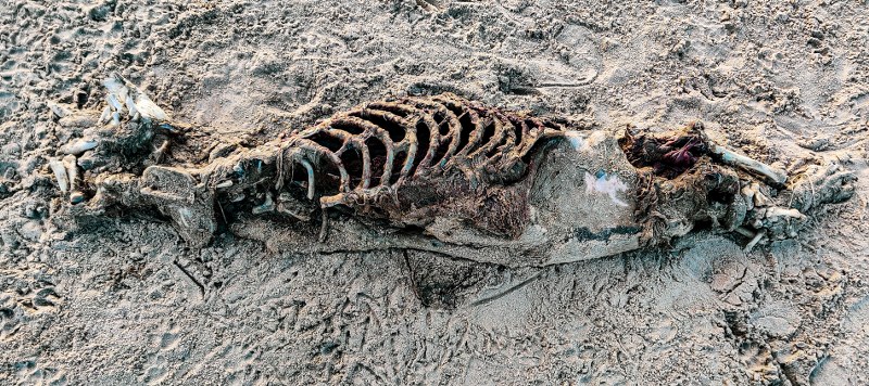 Et stykke oppe på stranden disse efterladenskaber efter en, der forpassede chancen for at vokse til… Jeg vil ikke gøre mig klog på arten, men lige her kan vi da kalde den en af den anadyomene slags…