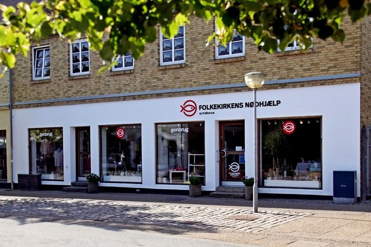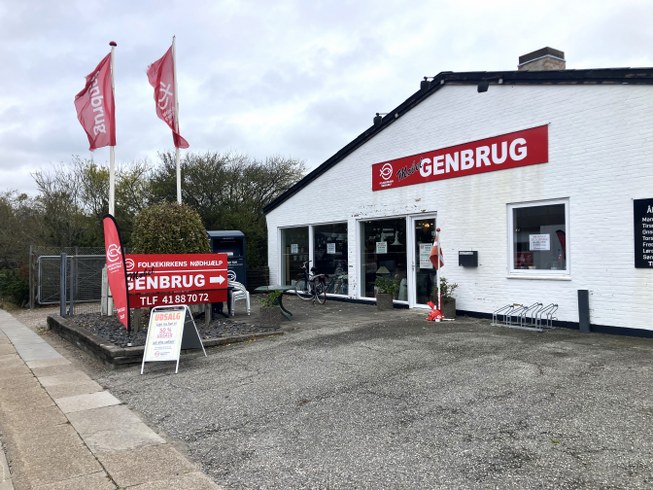 Folkekirkens Nødhjælp åbnede sin første genbrugsbutik i 1972. I dag driver organisationen over 100 butikker på landsplan. Butikkerne drives af frivillige, og overskuddet går til organisationens arbejde med nødhjælp i verdens brændpunkter.