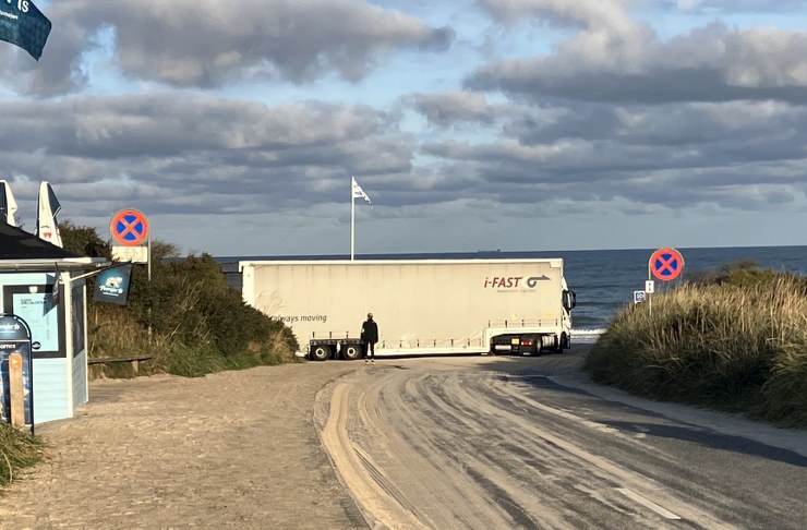 I weekenden nåede en lastbil-chauffør næsten til verdens ende – han kunne ihvert fald ikke komme længere.