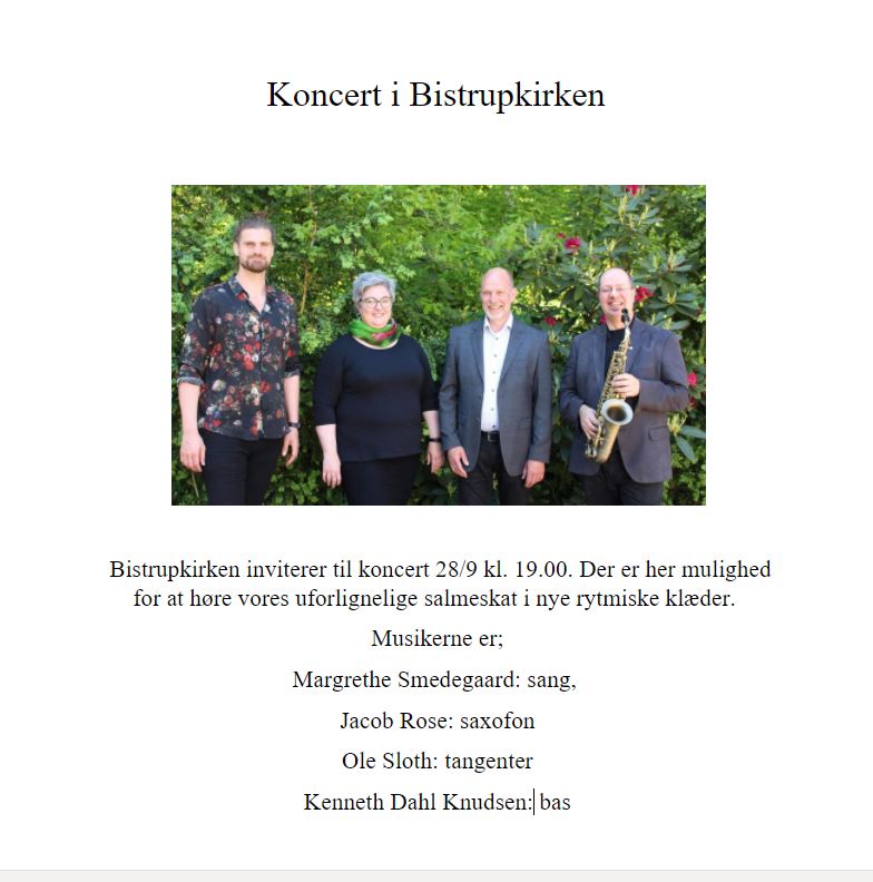 Og på tirsdag den 28. september skulle jeg måske kigge ud igen… Her bydes der på salmer i nye rytmiske, jazzede klæder…