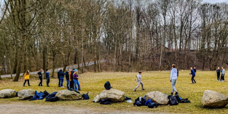 7. klasse fra Hjørring Private Realskole fik øget pulsen og motion i afmålte doser, da den stod på udetimer i parkanlægget midt i Hjørring… Entusiasmen blev måske hjulpet på vej af udsigten til, at påskeferien nu står for døren sammen med en halvvejs normalisering af skolegangen efterfølgende…