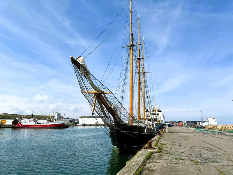 Skonnerten står efter anløbet fra Gøteborg registreret til almindelig henliggen i Hirtshals Havn. Herfra skal det flotte, gamle sejlskib efter planen afsejle onsdag ved middagstid.