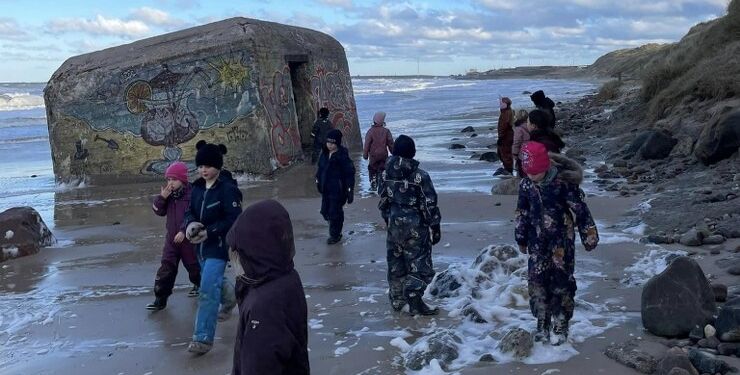 Mælkevejen fra Friskolen Skallerup har i det smukke og kolde vejr haft den skønneste tur til Hirtshals. Børnene fra indskolingen spiste madpakker og så udstillingen af sten samt hørte om istiden ved Hirtshals Fyr.