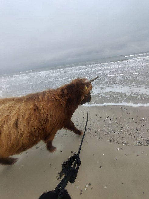 Min kæreste ønskede sig i fødselsdagsgave at komme ud og klappe en skotsk højlandskalv. Det vidste en af hans kollegaer også, så hun tog fat i mig og satte mig i kontakt med Søren fra Tannisbugt natur og Vandplejeforening.