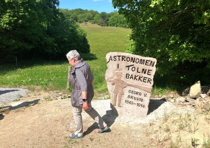 Tolne Gjæstgivergaard ved stationen inde i selve Tolne har også mandag en udstilling om astronomen fra en hytte langt ude og højt oppe i Tolne Skov.