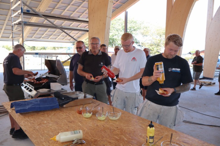 Ved rejsegildet deltog sponsorer, håndværkere, leverandører, repræsentanter for Sindal Idrætsforening, den nye Aktivitetspark, Sindal Skole og Forretningsudvalget.