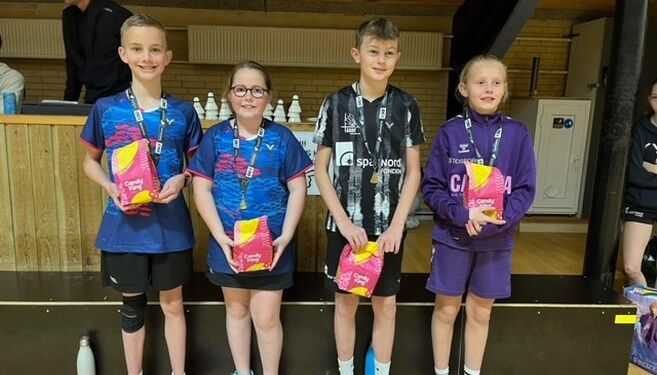 En fantastisk badmintonweekend er netop afsluttet, hvor Bjergby-Mygdal Badminton imponerede med hele 6 spillere ved Nordjyske Mesterskaber i Dronninglund: Mikkel N, Noah A, Sylvester, Marcus og Freja.
