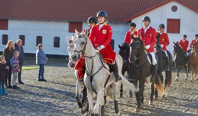 Der er parade i gårdspladsen 10.30 og derefter vil de 22 heste og ryttere være i terrænet indtil ca. kl.  13, hvor jagtridningen afsluttes. Klubbens DNA er røde jakker, gule kraver og friske heste. Kombineret med dygtige ryttere, som elsker jagtridning, bliver det til Jydsk Jagtrideklub, som har eksisteret siden 1964.