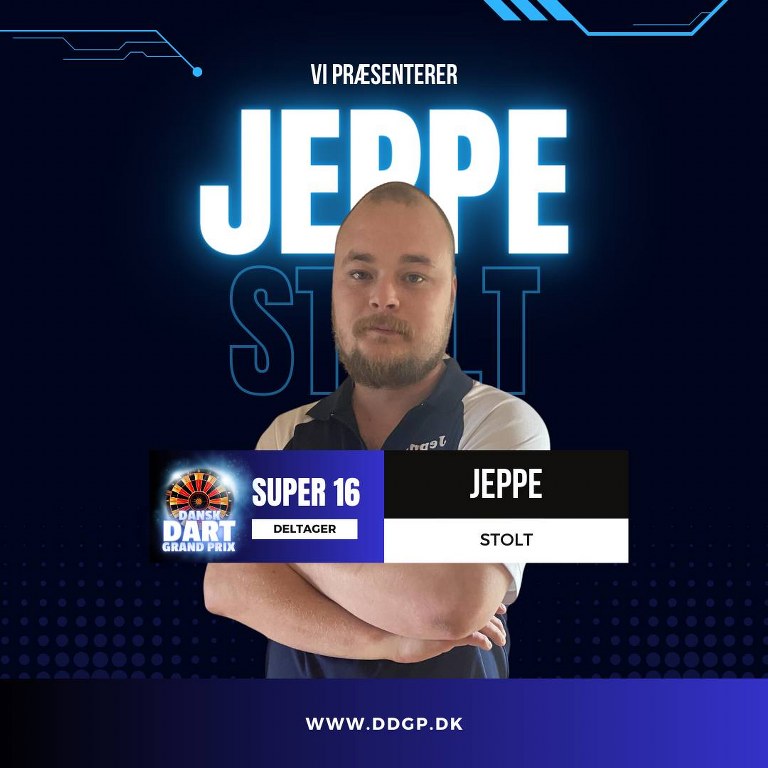 Jeppe Møller Stolt med rødder i Hirtshals er efterhånden blevet et kendt navn og en fast del af toppen af dansk dart, med flotte kampe og resultater som blandt andet en 3. plads ved Denmark Open i 2023. Nu er han blevet inviteret til at spille Super 16 hos Dansk Dart Grand Prix.