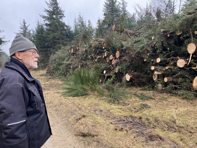Jørn Munk Nielsen er forhenværende erhvervschef i den tidligere Hirtshals Kommune. Han bor i Tornby og har i 40 år gået daglige ture i Tornby Klitplantage. Noget er imidlertid faldet ham for brystet i forhold til fældning af træer i plantagen.