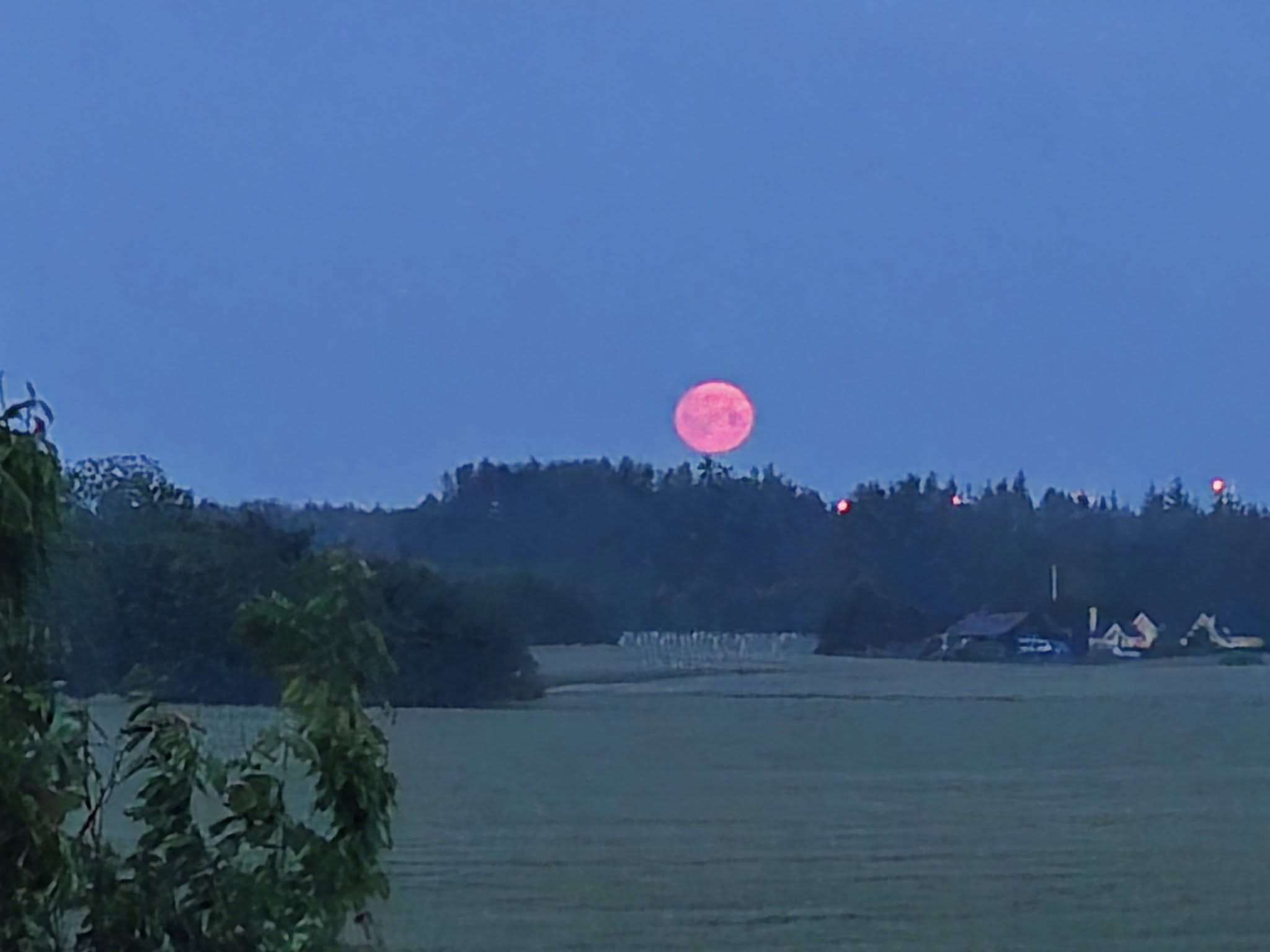 Fuldmånen lyser nemlig i denne tid særligt rødt på den nordlige halvkugle, fordi den ved sommersolhverv har årets laveste placering over horisonten.