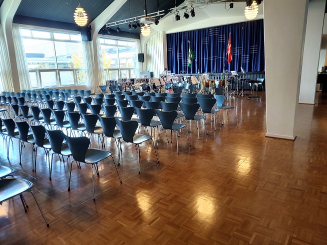 I anledning af jubilæet havde musikkorpset lejet sig ind i festsalen på UCN Skolevangen i Hjørring.