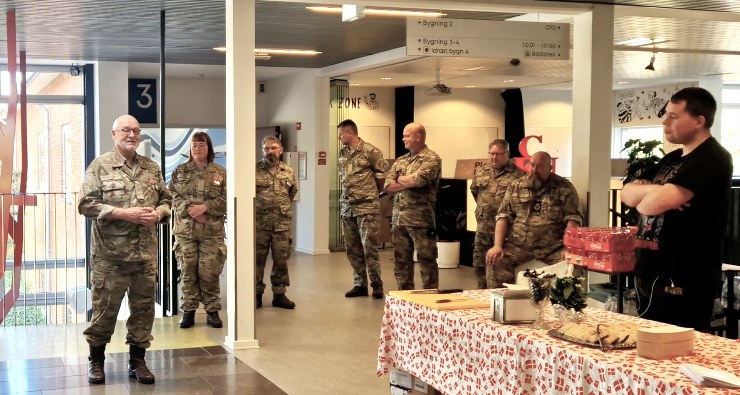 Musikkorpsets chef kaptajn, Carina B. Engan, hilste alle velkommen og ønskede tillykke og bød på kransekage inden koncerten.
