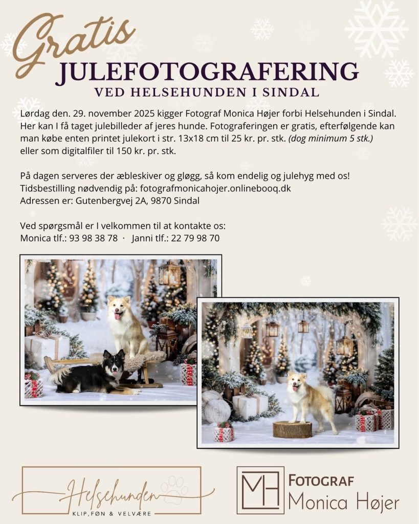 Lørdag den 29. november inviterer Helsehunden på Gutenbergvej 2A i Sindal til en hyggelig dag med gratis julefotografering af hunde.