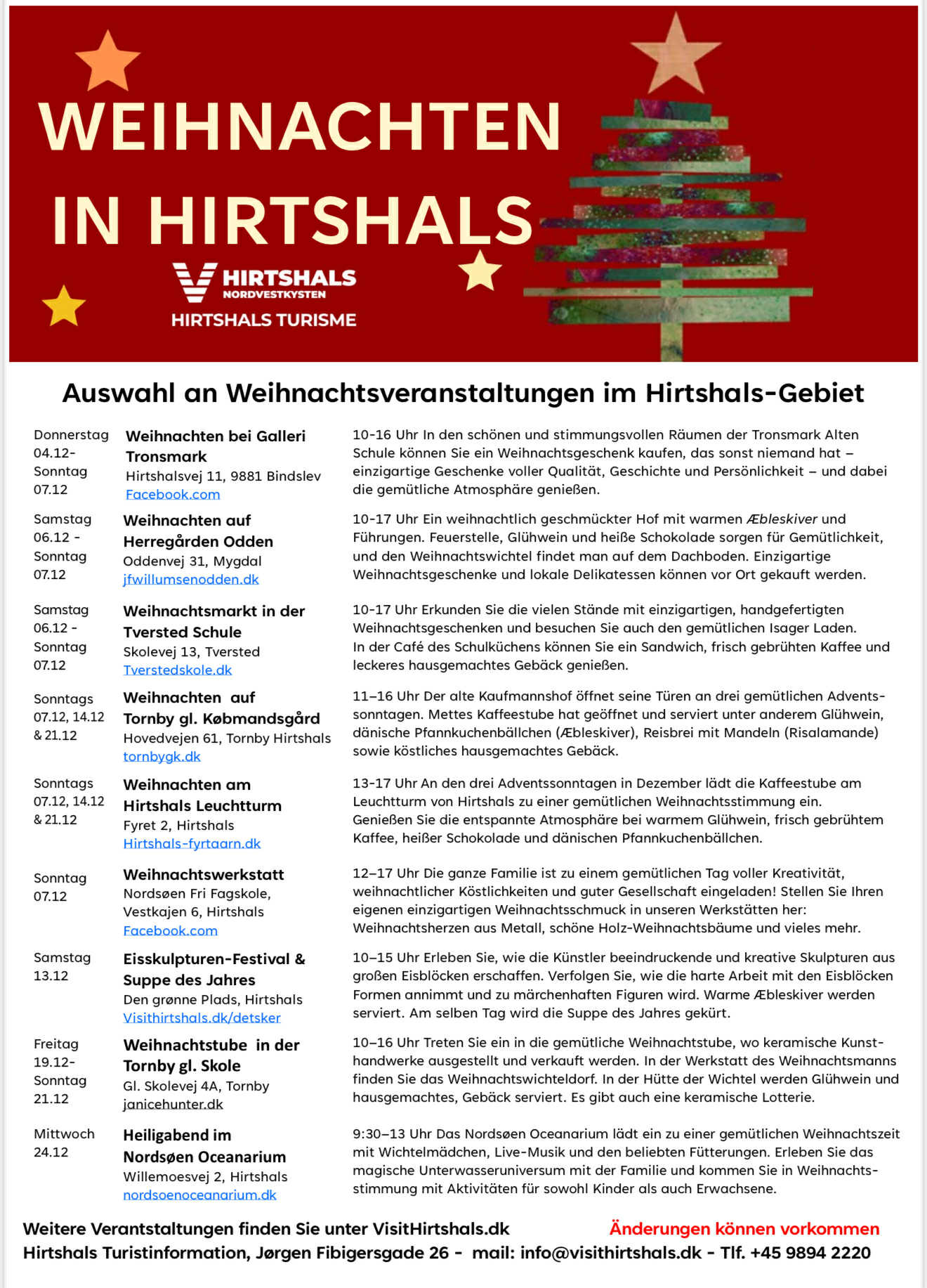 Juletiden nærmer sig, og Hirtshals Turisme vil gerne dele et udvalg af stemningsfulde arrangementer i lokalområdet i december både på dansk, engelsk og tysk.