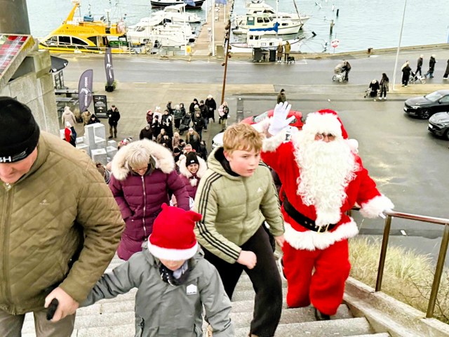Julestemningen var ikke til at tage fejl af, da julemanden fredag eftermiddag lagde til ved Sydvestkajen i Hirtshals.