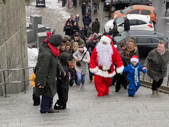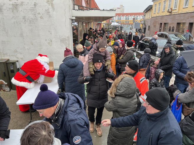 Ikke desto mindre dukkede der især fra middagstid rigtig mange lokale og gæster op, da julemanden anløb Hirtshals Havn med HG 159 Johs. Hejlesen, hvorefter han med en hale af børn og voksne efter sig gik op ad Trappen til Den Grønne Plads og videre til fortovet overfor Lille Tektonisk Plads.