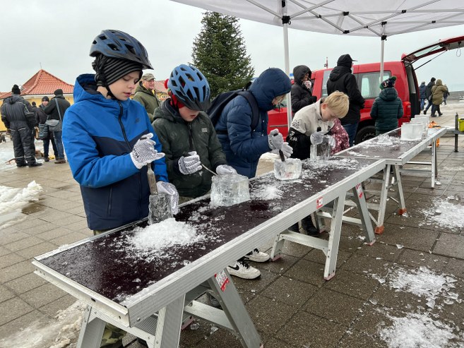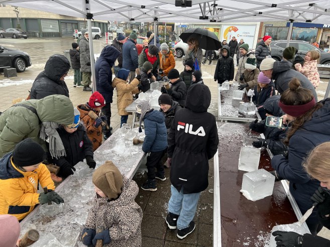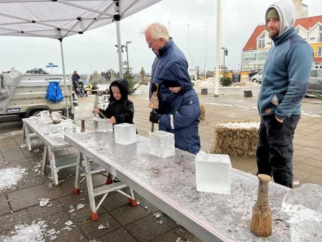 På det tidspunkt var kunstnernes isskulpturer desuden begyndt at tage form, hvilket også gjorde sig gældende for de lidt mindre af slagsen hos de mange børn, der lod sig inspirere og vejlede af den erfarne billedhugger Søren Cip Nielsen, som er manden bag det landsdækkende koncept Ice For Kids.